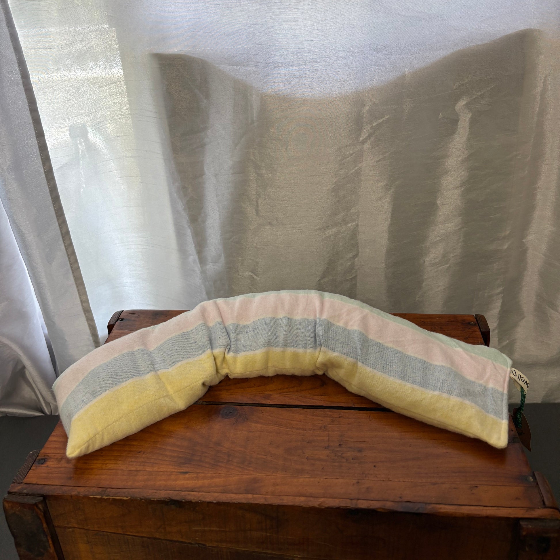 ***Stiff neck? Tense shoulders? This long handmade rice-filled heat pad is designed to drape comfortably across your shoulders or curled in your lap. Just pop it in the microwave for cozy, targeted relief from aches, payne’s and cramps. Relaxation: activated. **MICROWAVE FOR AROUND 2 MINS**